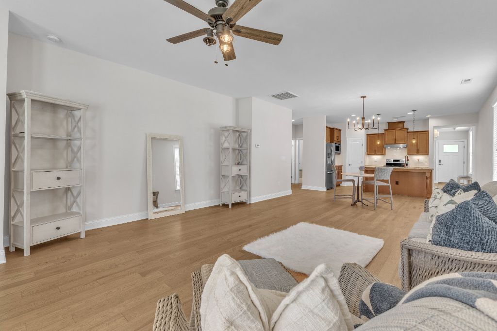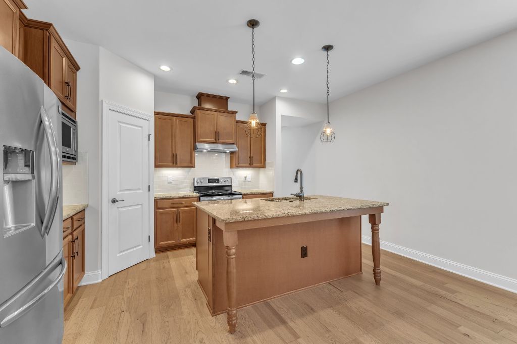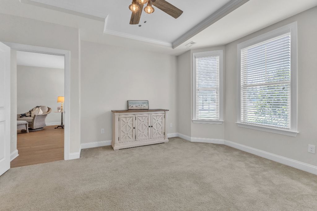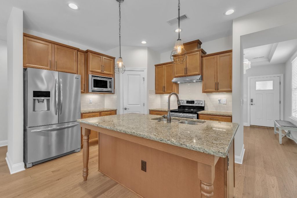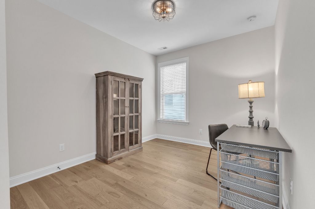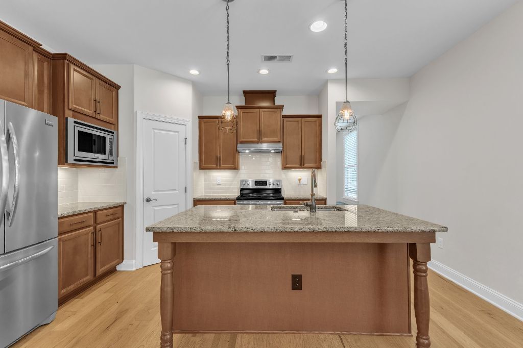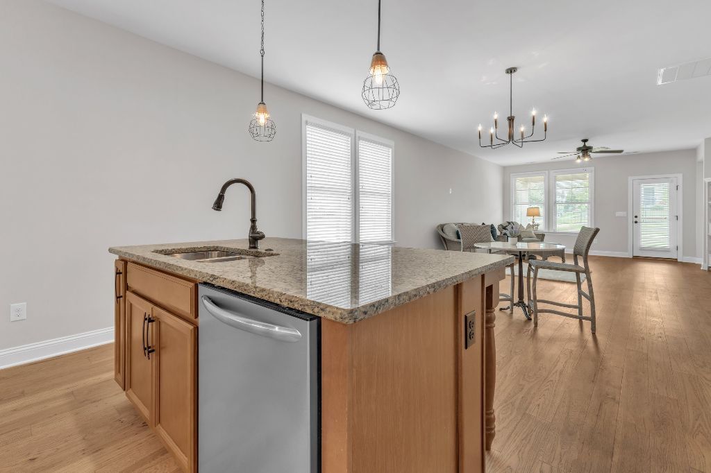 Charming 2-Bedroom Ranch with Office in Award-Winning 55+ Community – Creekside at Bethpage!Welcome to easy living in this refreshed 2-bedroom ranch with a dedicated office, located in the sought-after Creekside at Bethpage 55+ community! Step inside to discover brand new Charlotte Hickory wood flooring throughout the main living areas and a bright, open-concept floorplan that’s perfect for both relaxing and entertaining. At the heart of the home is a gourmet kitchen featuring granite countertops, a stunning tile backsplash, abundant cabinetry, matching stainless steel appliances, an oversized walk-in pantry, and convenient counter bar seating. Thoughtfully designed, the kitchen seamlessly connects to a spacious living and dining area that’s bathed in natural light from a full wall of windows. Retreat to the large Primary Suite, which boasts a tray ceiling, large bay window, ample room for a sitting area, and a luxurious en-suite bath with a glass-tiled shower and built-in bench, dual vanity with granite countertops featuring drawer storage, and a generous walk-in closet. On the other side of the home you will find a private guest bedroom and full bath, along with a versatile office space that includes a closet and can easily function as a third bedroom with the simple addition of doors. Enjoy peaceful outdoor living with a rocking-chair front porch and a covered back patio that overlooks scenic walking trails. Just a short stroll to the community clubhouse, where you’ll enjoy resort-style amenities including a pool, fitness center, pickleball, planned social events and more. Unbeatable location—minutes to I-40, I-540, Brier Creek shopping, dining, medical facilities, and RDU Airport. This home truly offers the best in comfort, convenience, and community. A must-see!