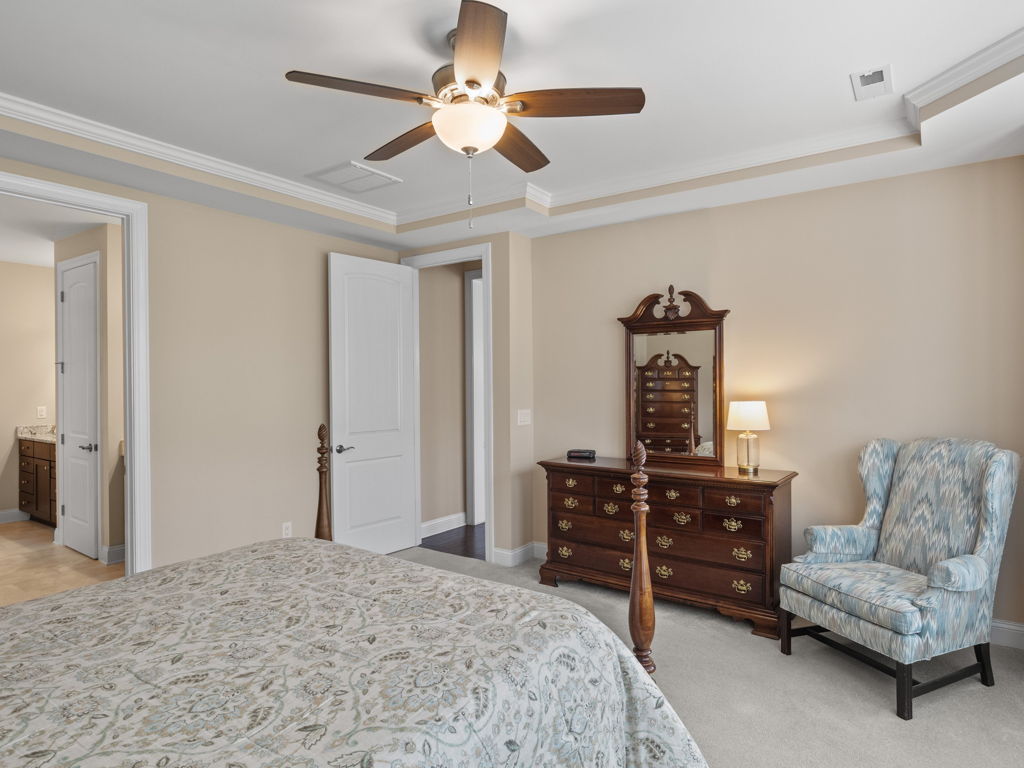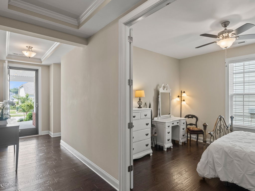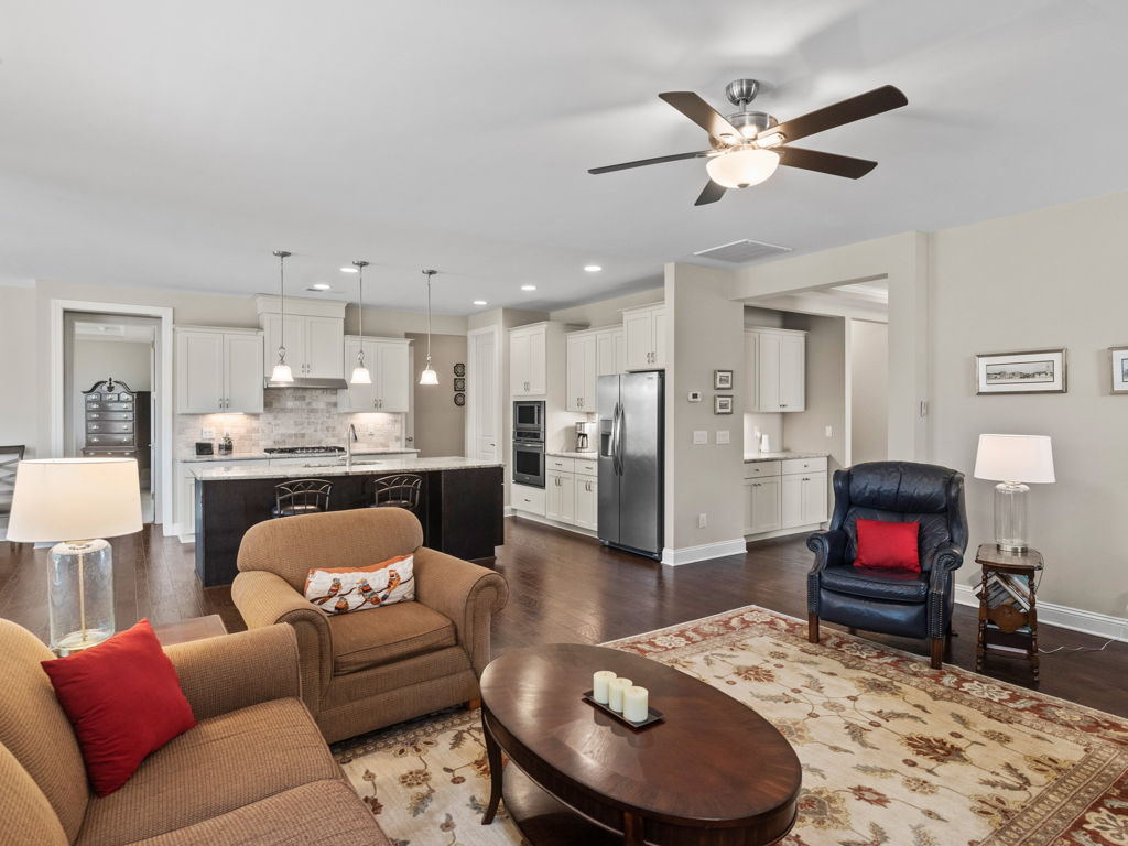 Immaculate, Move-In Ready Whitman Ranch w/3 Car Garage. Enter to gleaming hardwoods-trending tones and open floorplan. Entertainers dream with central Kitchen ftrs 42″ Cabinets, Granite, SS appliances, working island w/counter-bar seating and walk-in Pantry. Extensive millwork w/crown, trey, french doors. Oversized Primary Suite w/Bay and Garden View, Trey and Lg En-Suite Bath w/dual vanity, oversized tiled walk-in shower w/bench, WI Closet and pass-through Linen Closet to Laundry! 2nd Bedroom w/en-suite and flex rm can be 3rd bedroom as shown. Two Butlers Pantry. Enjoy the outdoors from Rocking Chair Front Porch or spacious Screened Back-porch and lg Patio. Loads of storage throughout. Award Winning Resort Style 55+ Community features Pool, Tennis, Clubs, Fitness, Pickleball and more!!! Must See!