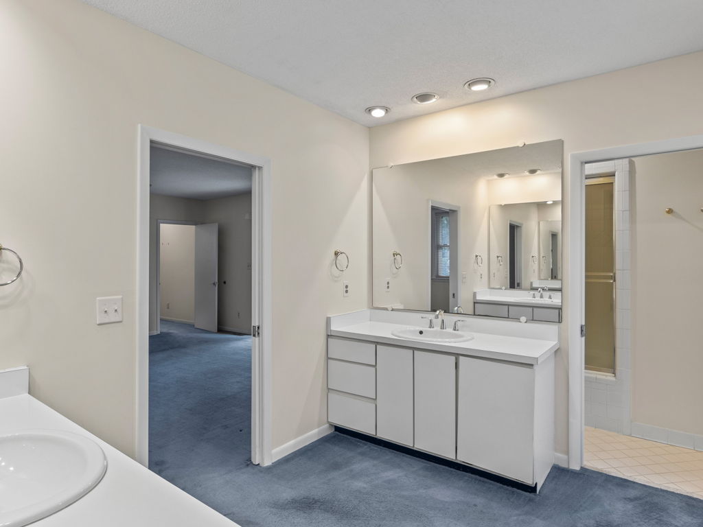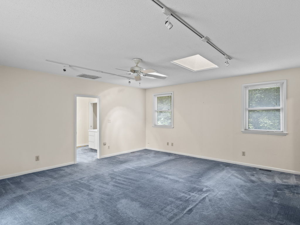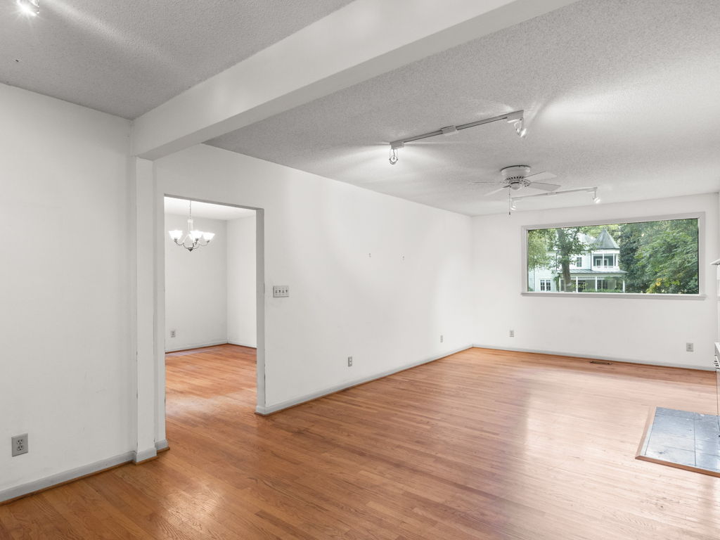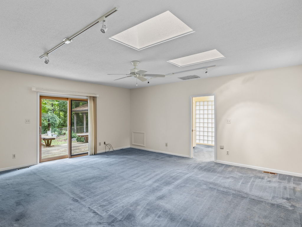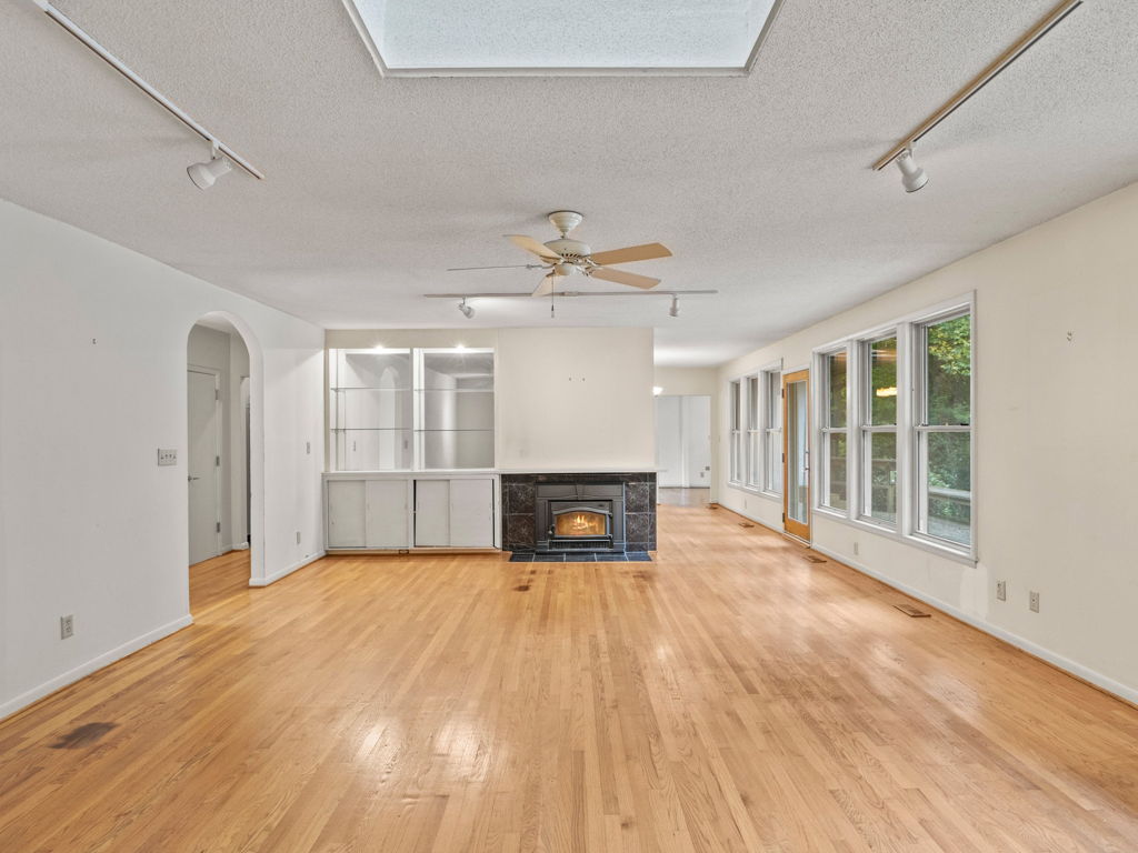 RARE Single Story Living with ADU on 1.38 acres Inside the Beltline! Beautifully landscaped home in a serene setting nestled between North Hills & Midtown East – just minutesf rom both. Turn this home into your dream home – the possibilities are endless!!! Enter the home to hardwoods in all of the main living areas and a wall of windows in the living room overlooking the large back deck and patio. The living room features a Jotul wood burning fireplace & built-ins. From the living room the kitchen & dining room are to the left and you will also find a huge family room with another fireplace and large windows as well. On the other side of the home, the large primary bedroom features a sliding glass door onto the back deck, a sizable bathroom and 2 walk-in cedar closets. The other 2 bedrooms are a decent size -1 w/walk-in closet. Don’t miss the oversized garage! ADU is offset from the back patio and features a studio space, full bathroom, stackable washer/dryer, and full kitchen.