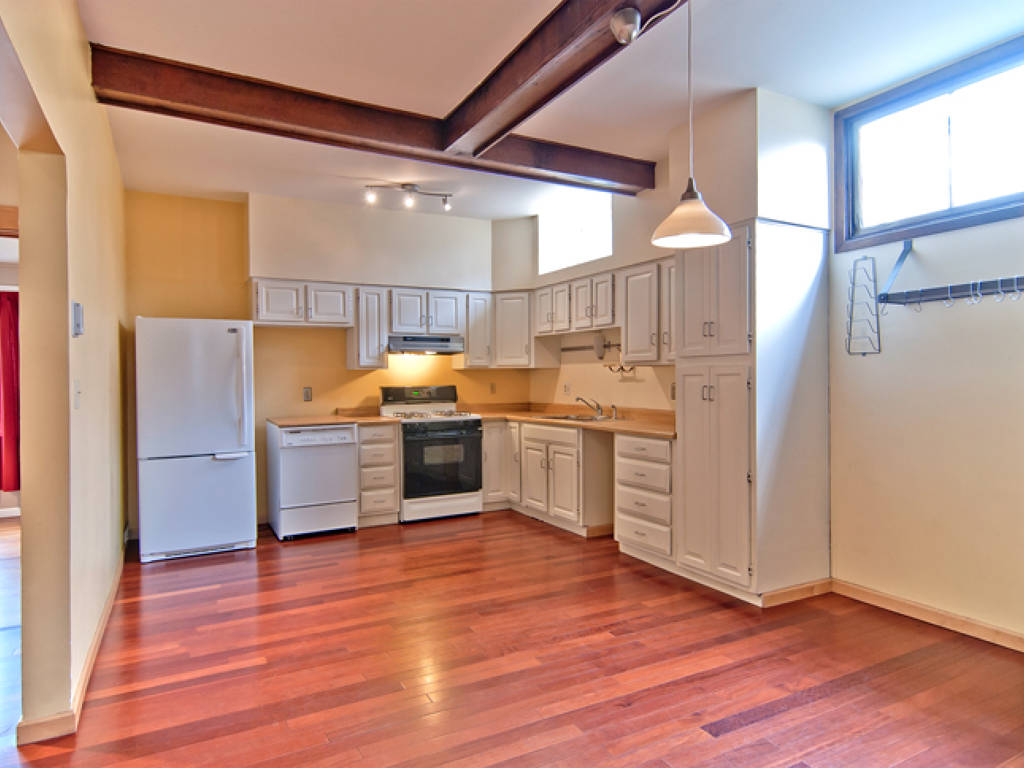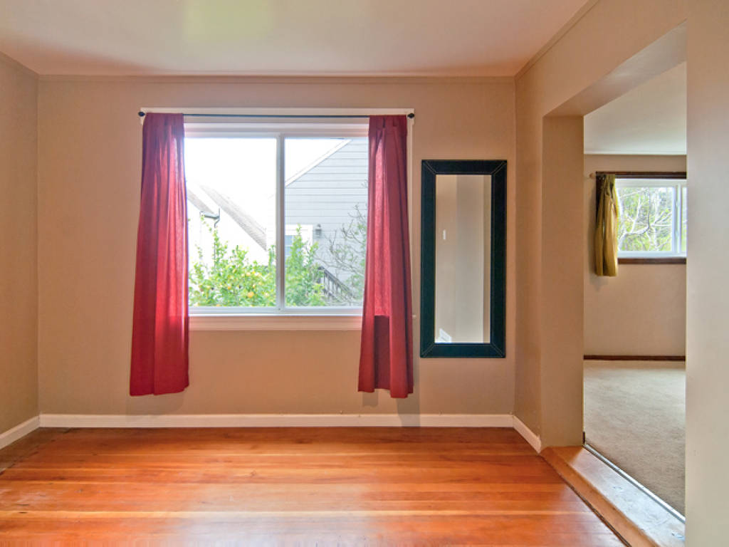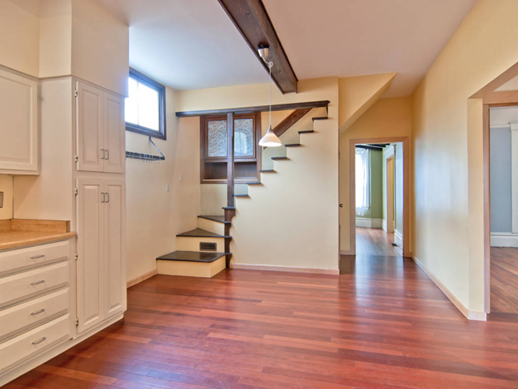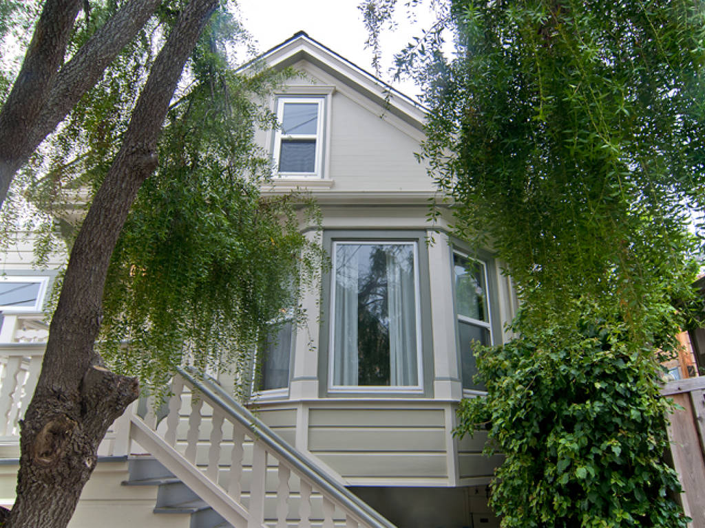 Charming Victorian in Prime Bernal Location • Main level with beamed ceiling living room, contemporary kitchen, modern bath, two bedrooms and a rear study / bonus room • Two additional attic rooms upstairs • Additional room and bath, storage area, and a 1-car garage on ground floor • Quaint rear yard