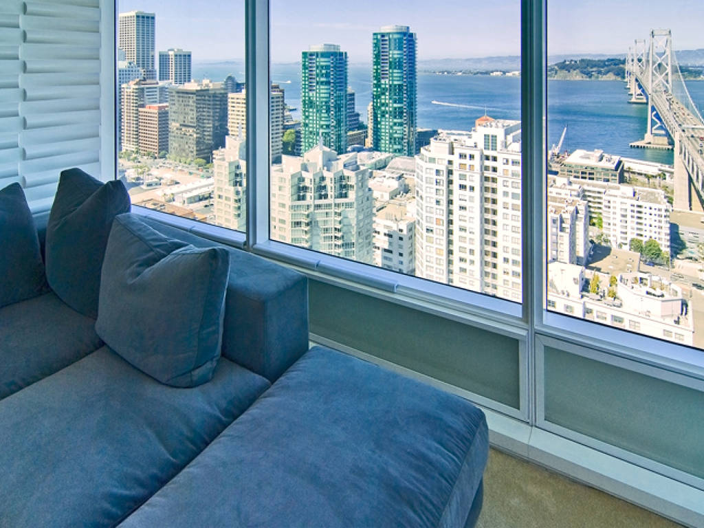 Front Row Center to America’s Cup! Unparalleled 180 degree Bay Bridge and spectacular water views from this rare 28th floor 2/2 den deluxe at the world famous One Rincon Hill. Redefine urban sophistication. Indulge in breathtaking panoramic views. Sunlight and vistas of the Bay Bridge and surrounding city views define the scene from this One Rincon Hill residence. A gracious upgraded foyer entrance is ideal for receiving guests and showcasing artwork offering a classic yet contemporary mood as you enter the home. Upon your entrance from the foyer you see VIEWS and More Views! Mesmerizing, is how you feel the minute you enter your home on the top of the famous One Rincon Hill. Enjoy your morning cup of coffee as sunrise offers the city’s most gorgeous views of the Bay Bridge with expansive floor to ceiling windows showcased with evenings glistening with illuminated lights spanning the bay Bridge and showcasing South beach with AT&T Park as your landmark. Building amenities include 24 hour doorman, concierge, full service valet parking, club-quality professionally equipped fitness center with steam rooms and showers, spacious hospitality room with high-definition DVD theater and catering kitchen for hosting gatherings, full-size outdoor pool with beautifully landscape garden deck, gourmet barbeque area, and reflecting pool with infinity edge. Entry: • Custom floor to ceiling mirror • Updated lighting with motion sensor • Custom electrical wiring • Pablo Pardo light bench (available optionally) Living: • Dimming recessed LED lighting (Cree) • Lacquered bamboo panel feature wall • Custom motorized Hunter Douglas Silhouette shades with wired electrical and RF remote • Electrical pre-wiring for cove lights • Network wiring from data closet • 7.2ch surround sound wiring w/ 10 gauge twisted cable • Projector wiring w/ 1.3a certified HDMI, RS232 & power cables • Seven installed ceiling speakers (Yamaha NS-IW560C) • Optoma HD81-LV projector (1080P, 2500 lumens) (available optionally) • Elite 84” motorized & tensioned projector screen w/ RF remote (available optionally) • Lacquer audio component cabinet (available optionally) Study: • Modern cabinetry and solid wood desktop • Dimming recessed LED lighting (Cree) • Under cabinet lighting and electrical • Network wiring from data closet Master Bedroom: • Pre-wiring for flatscreen • Network wiring from data closet • Custom Hunter Douglas Duette® shades 2nd Bedroom: • Dimming recessed LED lighting (Cree) • Electrical pre-wiring for cove lights • Custom Hunter Douglas blackout roller shades Other: • Kitchen: dimming recessed LED lighting (Cree) • Kitchen: wall wine-rack • Additional electrical wiring in master bath • Designer color theme throughout with Benjamin Moore Aura paints • Updated light switches and receptacles throughout