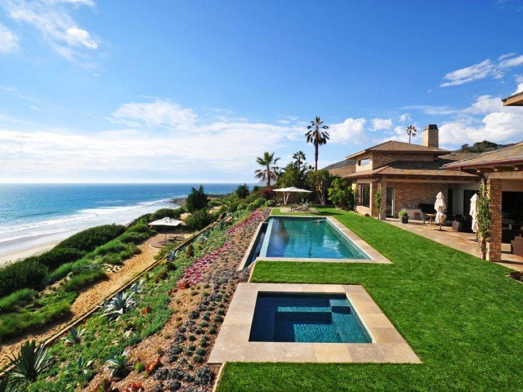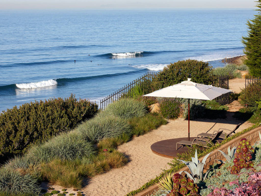 MariSol is an exceptionally private and award winning 80-acre community of 17 luxury Malibu Estates on an oceanfront bluff top on Malibu’s rural western beach. Available in its first phase are ten expansive, one-acre, perfectly finished Malibu Estate sites and impeccable single story Malibu Beach Houses for Sale, with pristine white water, island and mountain views above one of Malibu’s premier surf breaks. With nearly 10,000 square feet of single story indoor-outdoor living space, the showcase Malibu Beach House for Sale features a 60-foot-wide great room with 14-foot-high ceilings, a fully equipped wet bar, twin master bedrooms with towering oak ceilings and views of surfers right below, two spacious other bedrooms with mountain views, a state-of-the-art theater, open chef’s kitchen, a breakfast room, a refrigerated wine cellar, a gym, an office and beautifully landscaped grounds with an infinity-edge lap pool, 3 patios, a state of the art barbeque and outdoor dining pavilion, an ironwood deck on a 4,000 square foot bluff top “private beach,” a water wall of rock quarried from the site set in a magical fern and oak garden and a driveway of cobblestone hand hewn from native rock and parking on site for 10 cars (3 garaged). The home is fully furnished and access to the Private Jet Airport is only 15 minutes away along scenic Pacific Coast Highway. Unlike any other Malibu Property, homebuilding at marital is free of coastal development permits and City restrictions. As a result, homebuilding here is easy and fast, allowing dreams to be built with great latitude and a minimum of interference. These Malibu Estates have been thoughtfully sited for optimal privacy and pristine views on MariSol’s stunning and immaculate park-like grounds which include an exquisite array of native plants, specimen oaks and other ocean-friendly and drought-tolerant species.