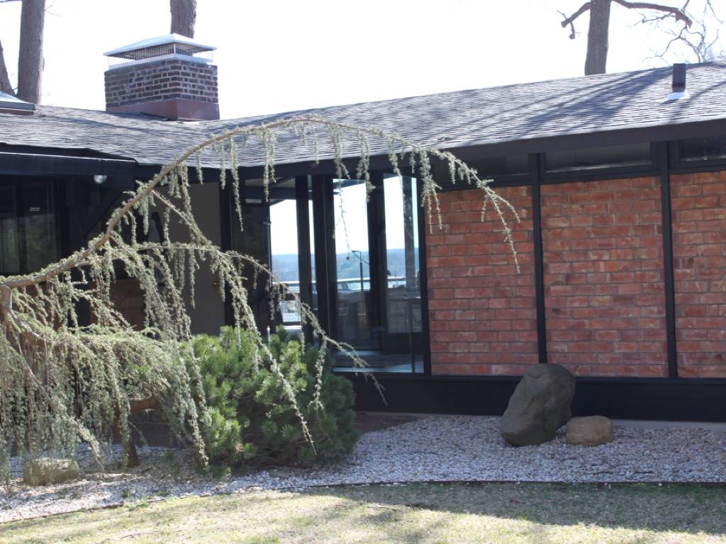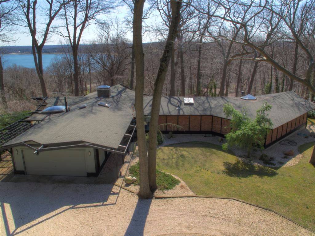 Mid-Century Modern home with hilltop vistas of Lloyd Harbor and Huntington Harbor. This home offers two levels of living space featuring walls of windows overlooking a very private 2 acre lot of mature trees and professional landscaping.