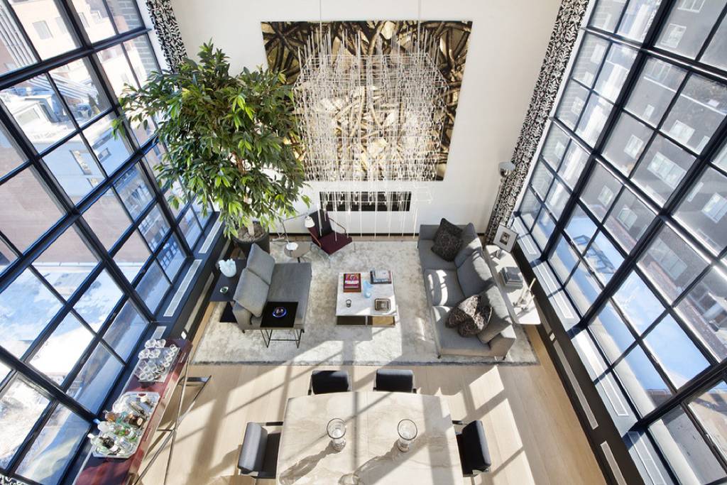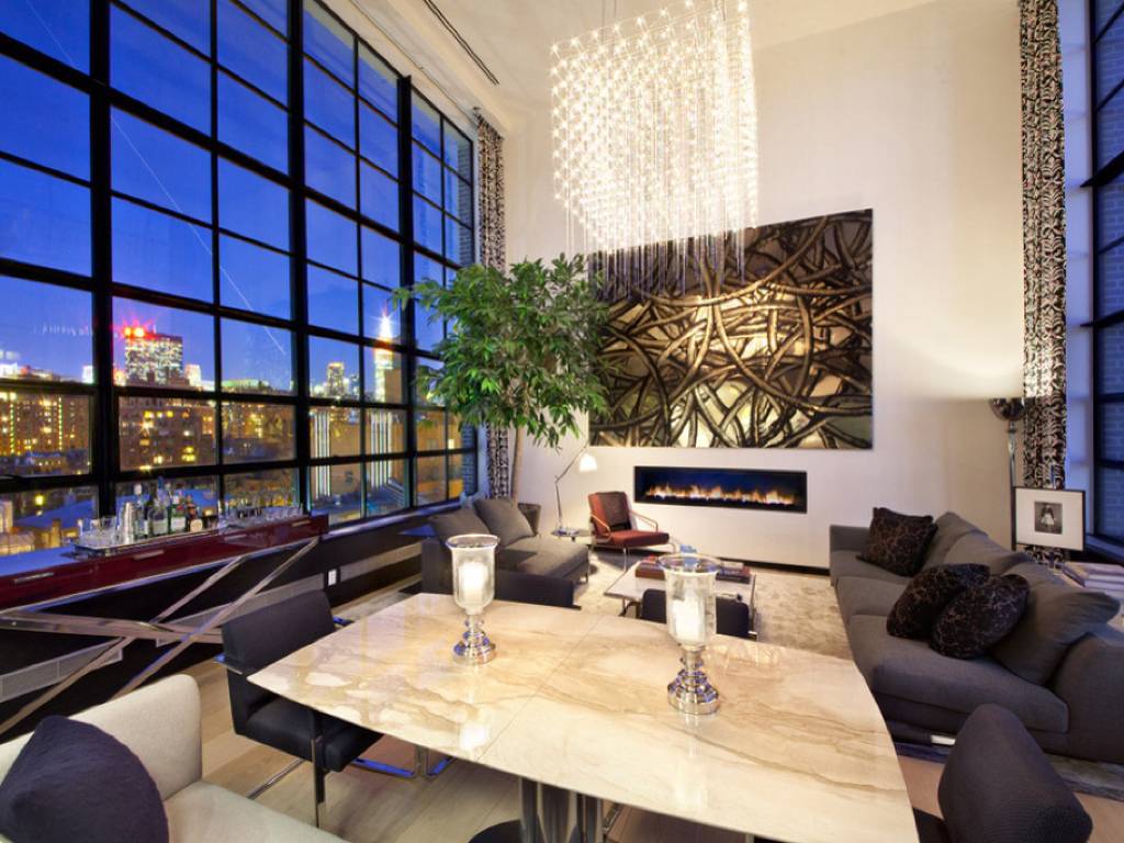 This dramatic Penthouse defies expectations with soaring double height living room ceilings and astonishing views to the north and south. Architect Cary Tamarkin’s signature style is apparent in every detail from the hand-laid brick exterior and expansive multi-paned steel casement windows to the elegantly minimal and painstakingly crafted kitchens and baths. Interior designer Felipe Diniz has enhanced the understated palette with a sense of glamour using richly textured wall treatments and elegant fixtures. There are two spacious balconies and an expansive rooftop terrace with 360 degree views. The High Line is Downtown’s most dynamic neighborhood with close proximity to the West Chelsea Gallery District, the lush High Line Park, trendy restaurants and boutiques. Residence Amenities: Kitchens kitted with Corian countertops, integral sink, Vola fixtures by Arne Jacobsen, SubZero and Miele appliances; Baths with honed Calcutta Gold Marble flooring, glass mosaic wall tile, and custom teak cabinetry; Insinkerator garbage disposal; Miele Washer/Dryer and undercounter wine cooler. Environmentally friendly details include responsibly harvested 10′ wide plank white oak flooring and the highest grade of energy efficient UV blocking glass. Building Amenities: 24-Hour Doorman, Full-Time Super, Architecturally-Designed Common Garden, an oversized private storage room for each apartment. 421-A Tax Abatement