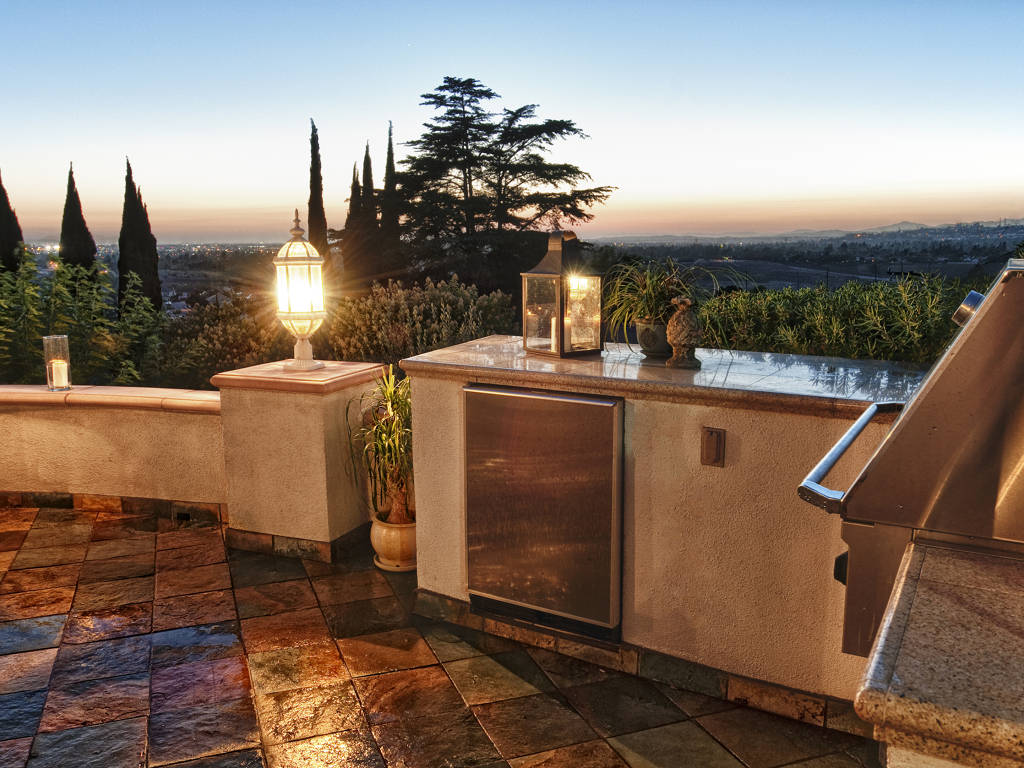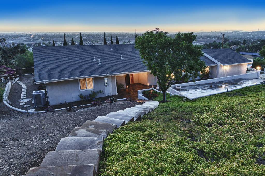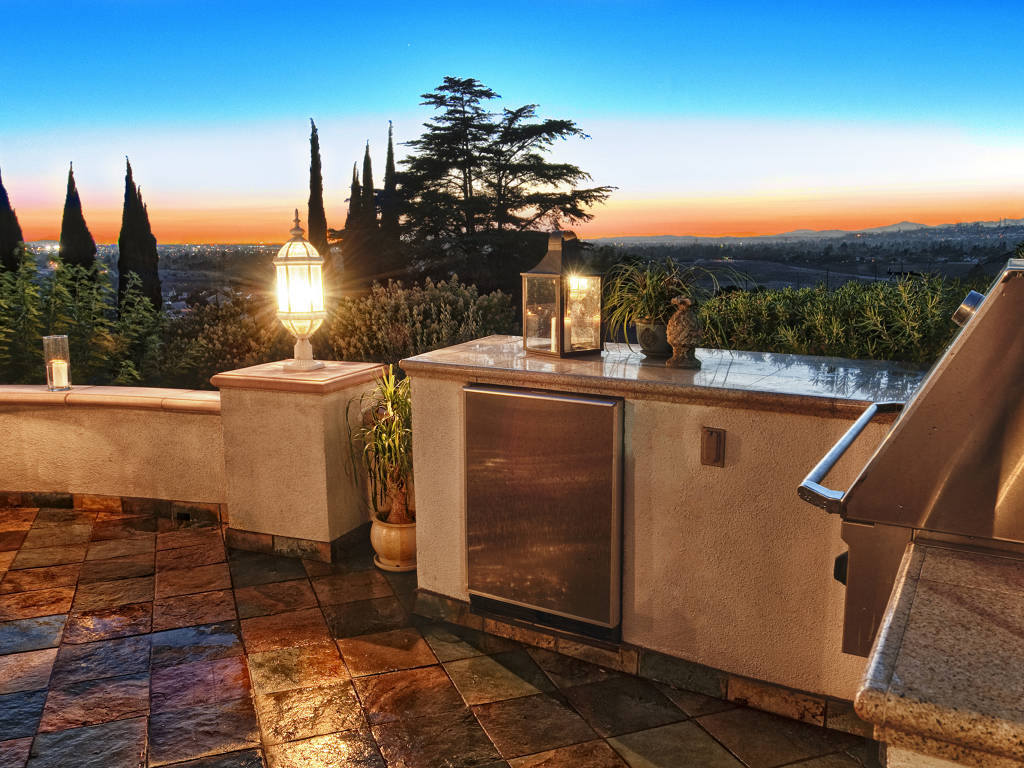 This single story custom home is tucked into the hillside of Orange with spectacular 270 degree views. The home sits on a spectacular 26,000 sq. ft. lot with 2,220 sq. ft. of open living space. The views are second to none as one has a front row seat to majestic sunsets, gorgeous city lights, and Catalina Island. The space features a stunning gourmet chef’s kitchen with professional grade stainless steel appliances, solid surface granite countertops, and custom maple cabinets. The space is defined by an efficient and flowing open concept floor plan which highlights two bedrooms, two bathrooms, and a beautiful combined living and family room with a fireplace. The space assuredly satisfies all of one’s storage and life needs with a attached two car garage, custom cabinets, epoxy flooring, RV parking (55 ft x 15 ft), inside laundry, and a gorgeous sun room that is strategically placed across the back of the home to take advantage of the views. The expansive master suite spans the South-West side of the home and features custom built-ins, ceiling fan, master bath with Jacuzzi spa tub, custom shower with frameless glass door, and a walk in closet. Custom landscaping also highlights this home’s magnificent views from the redwood deck. It flawlessly blends into the outdoor kitchen with granite counter tops, stainless steel appliances, gazebo, and custom slate flooring. This is truly a unique property so do not miss the opportunity to own a piece of Southern California living with one of the best views in Orange County.