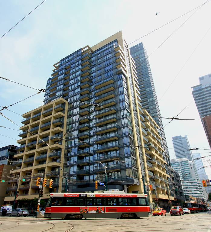 A 1 plus Den, At King and Spadina, The Hudson mirrors the tempo of Metro life. Its working, relaxing, dining and Entertainment. This is how you want to live. The Glukstein design allows for a free uncluttered style in this 758 square feet suite. A Main 3 piece bath with shower works great when you have a guest over. The Den separates you from the rest of the Living quarters. The Kitchen is sleek and functional. The Living space is Modern and airy. The Balcony views the City to the South with floor to ceiling glass and Hunter Douglas shading the morning sun. The Master with its sliding door creates peace from the restliness of the City . The 4 piece ensuite is cool and rejuvenating with light coloured marble and maple textures.This is your key to TO.