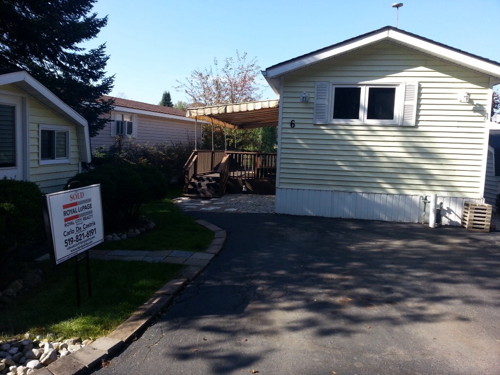 Manufactured home in the adult community of Millcreek Country Club. Nestled along the water, you’ll enjoy the sweeping vista of the community. Low maintenance and a worry free lifestyle can be found in this single bedroom dwelling. Current land lease fee is $522 per month will increase by $50 for any new occupant. Membership applications and fees are completed through the community manager at Millcreek Country Club. Application fee of $200 is subject to change without notice. Please ask me about contact information for the community manager. Other details and information can be found at www.InfoHome.ca. Call for viewings at 519.821.6191 or toll free 1.877.497.8975 and ask for Carlo De Castris or Margaret Davidson. Sales Representatives with Royal LePage Royal City Realty, Brokerage.