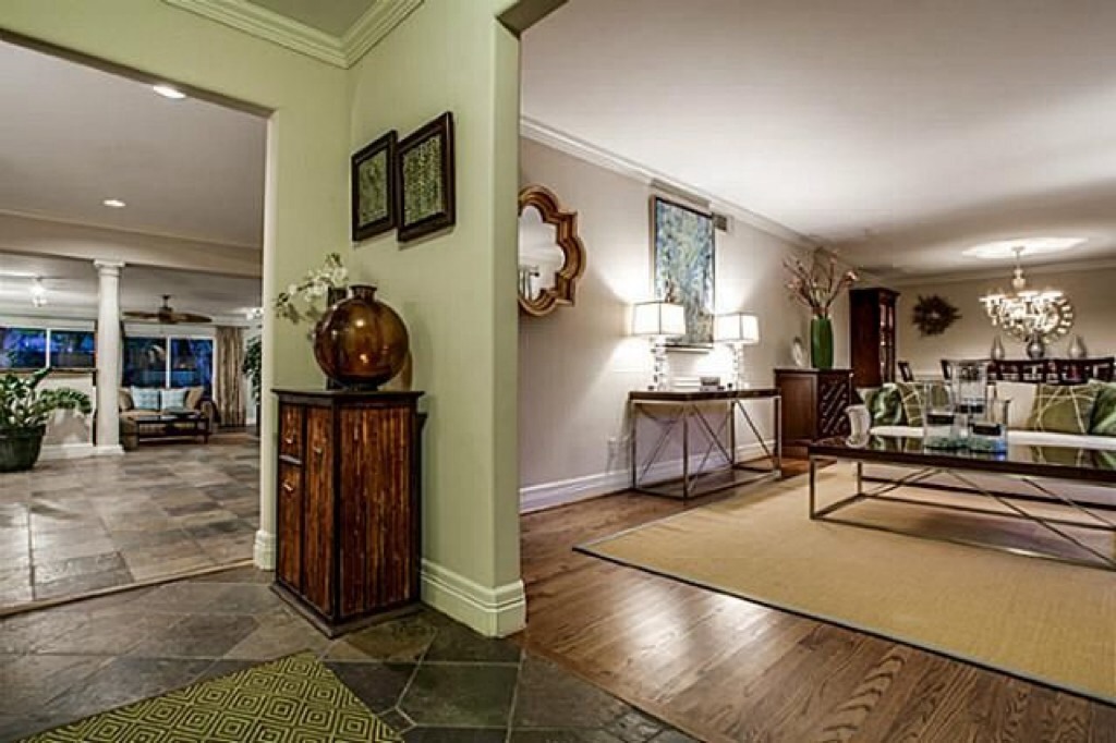 Fully remodeled mid-century ranch on an oversized 110X184 lot. 4 bedroom,4 bath,3 living areas. Gourmet gas kitchen that overlooks the living area. Slate,travertine & hardwoods. Beautiful granites & marbles throughout. Open floor plan & expansive windows add to the home’s light & bright feeling. Master suite features sitting & office area,with an enormous walk-in closet & spa bath.Combination jetair tub & walk-in 3-head shower. Open floor plan ideal for entertaining & family living.Spacious bedrooms.Expansive, park like backyard towering trees that frame the large,shaded patio & diving pool. Skylights. Sprinklered. Electric gate. Circle drive. No need to preview. Roof is 1 year old. Listed by Sandy Donsky, Ebby Halliday Realtors