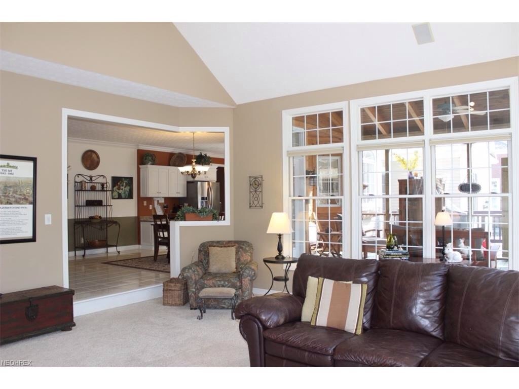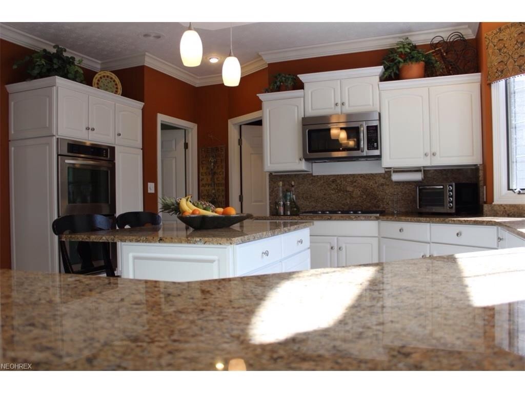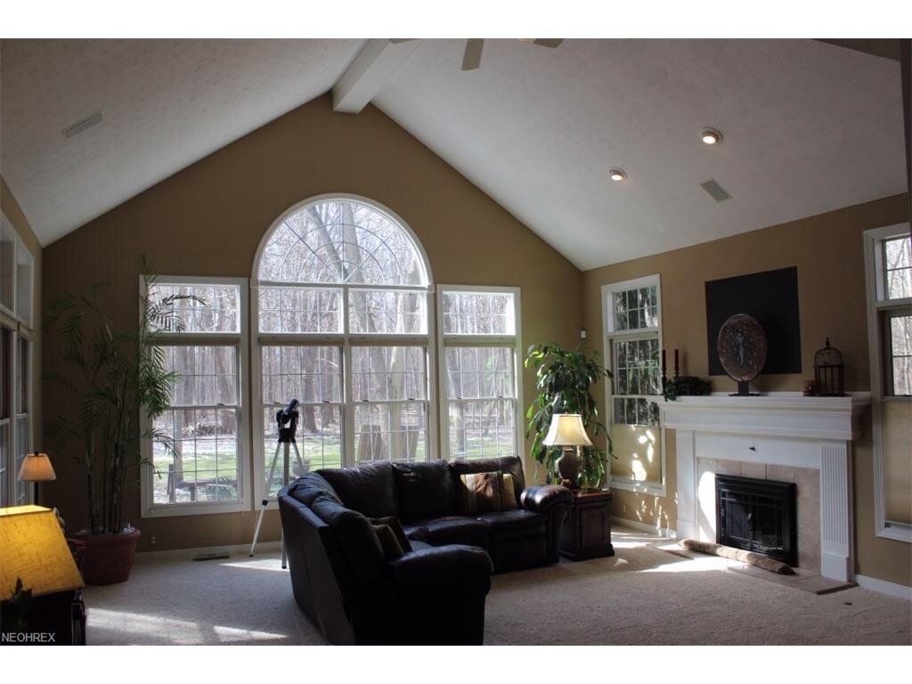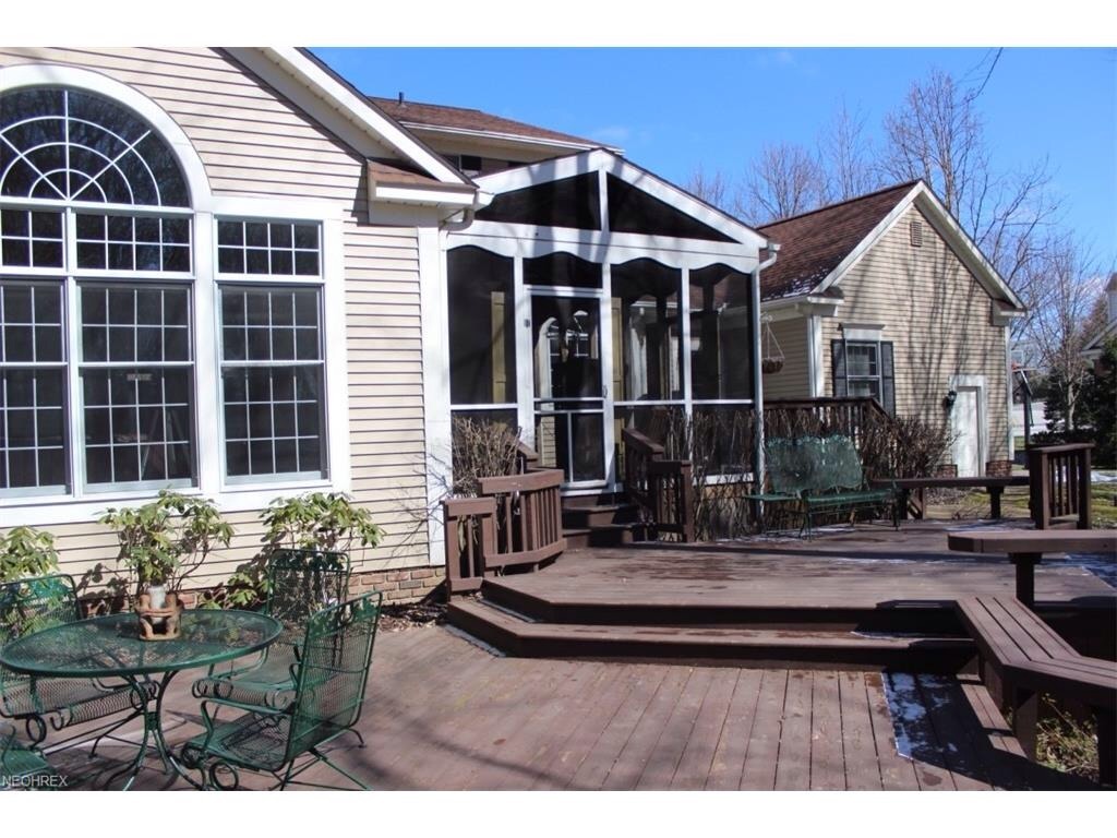 Distinctive Cape Cod style home with custom updates and features in Canterbury on the Lakes in Hudson. Featuring updated Eat-In Kitchen with Stainless Appliances, a Center Island and Granite Counters. The First Floor Master Bedroom Suite has Vaulted ceilings, a gas Fireplace and an updated Master Bath with glass block shower and dual granite vanities. A total of 3 gas fireplaces, a finished lower level and a large Screened Porch that opens to a large deck, stone patio and private wooded back yard. 4 Car Garage and many upgrades- Move in ready!