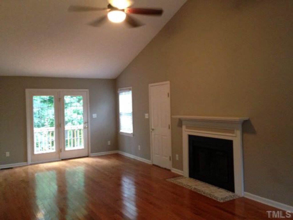 Private wooded lot,attached garage,hardwoods.vaulted ceilings, fireplace and great storage in garage ceiling. Close to Brier Creek.