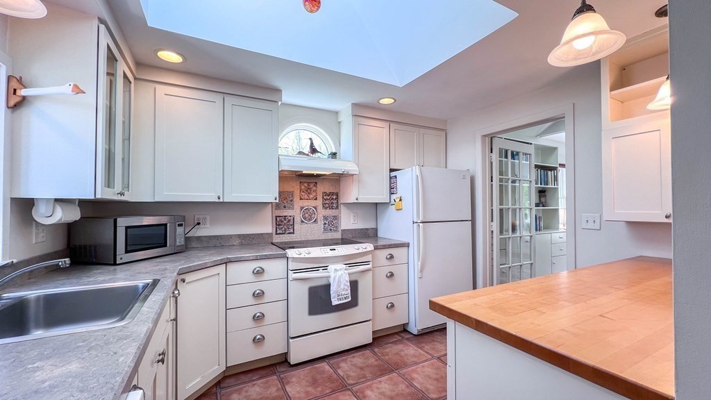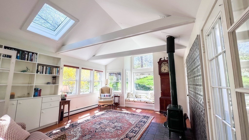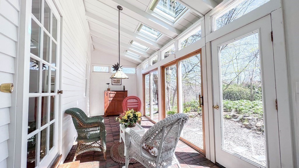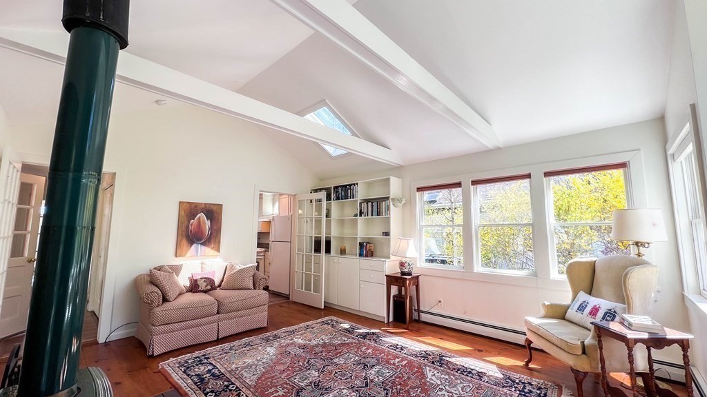 Bright & whimsical is a great description of this sweet Farmhouse! Located on the corner of Pokeberry Ln and East Pleasant St. on the “eyebrow”, you can walk to Amherst Center or the UMass Campus in minutes! Enjoy the many skylights, windows and doors allowing abundant natural light in every room. It is easy living with both the Main bedroom and 2nd bedroom or office on the first floor with a laundry and full bath! Many of the rooms are open with vaulted and cathedral ceilings including the living room, with a cozy wood stove, the kitchen and Main bedroom, nicely oriented to the back yard with easy access to your gardens and deck. The yard features stone walls, seasonal plantings and a lovely waterfall, it is so peaceful. Have your coffee in the 3 Season Sunroom, dancing with the morning sunlight. The second floor has 2 additional large bedrooms and bath with a shower, both with closets for plenty of storage.