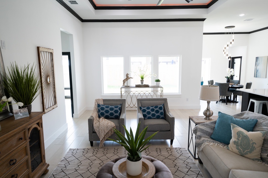 Builder will credit buyer up to $5,000.00 for Rate buydown or Closing Costs! This New Construction is offered by Justin Custom Homes… Featuring an open concept floor plan with 4 bedrooms, 3 Baths, OFFICE, Split bedrooms, 2 dining areas, and high ceilings creating a luxurious feel of spaciousness, ceramic tile flooring throughout, custom cabinetry throughout, rope accent color changing lighting, & endless quartz countertops throughout. The gourmet kitchen features; 48″ custom cabinetry, a large walk-in pantry, a Frigidaire Stainless steel GAS cooktop, an oven, & a microwave. The oversized master bedroom and bathroom feature two master closets with built-in dressers and shelving, a Jet tub, marble tile in the shower, and twin sinks. The garage features epoxy flake coated flooring. The outdoor covered patio has a ceiling fan and is pre-wired for television… Conveniently located near Del Mar- Oso Creek Campus, Shopping, and dining!