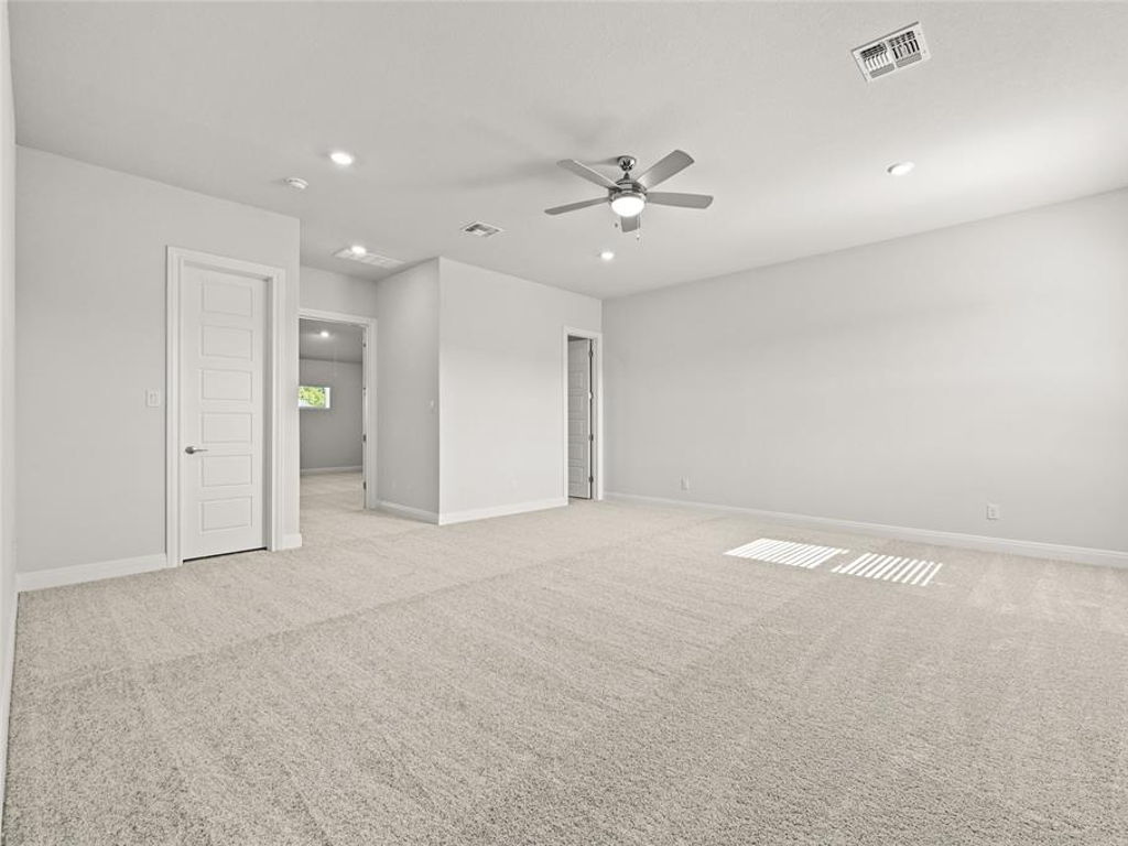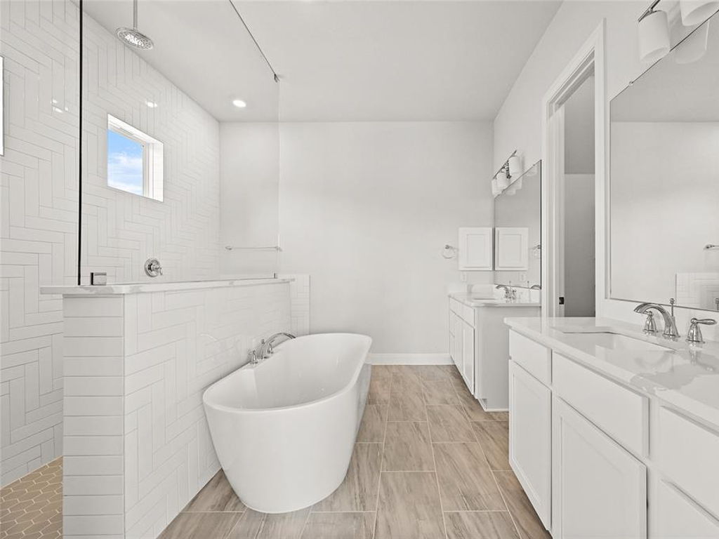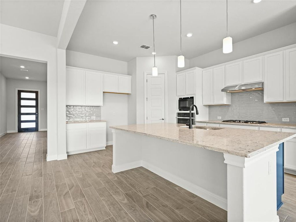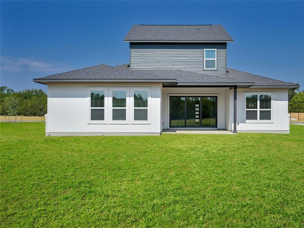 Caledonia Builders floor plan the McKenzie single story with a bonus room and Media room featuring 3665 sqft, 4 beds, 4 baths, 3 car garage, with tall 10′ ceilings on the first floor, 8′ interior doors, Family room, Master bedroom and the Dining room, large covered rear patio, 3 sides stone and stucco with the 4th side being stucco also, large open gourmet kitchen, Large Silestone Pietra island countertop, White painted 42″ Cabinets, S/S appliances, built in oven and microwave, built-in 5 burner cooktop, pot drawers under cooktop for all your large pots and pans, recycling station, wood tile flooring throughout the house in all the wet areas, family room, entry and hallways, Silestone – countertop in bath rooms 2, 3, and in bath 4 upstairs, 2″ blinds on windows, large 5″ base molding and 3.25″door casing, MUD room with bench and cubbies, 12′ sliding glass door has been added along with the luxury master bath, the bonus room and media room are all included, elevation features the farmhouse elevation, Luxury master bath includes mudset tile flooring in the master shower, stand alone luxury tub, his an her sinks and large his and hers walk-in closets, large walk-in closets at the other bedrooms, large utility room and enough space to put an extra fridge. Sprinkler on the front, 15′ sides and rear, and much much more. Buyer can still make design selections depending on when contract is signed. This is the Best Value on an acre lot in Liberty Hill for a new home. Buyer to verify all information including schools, tax rate and HOA.