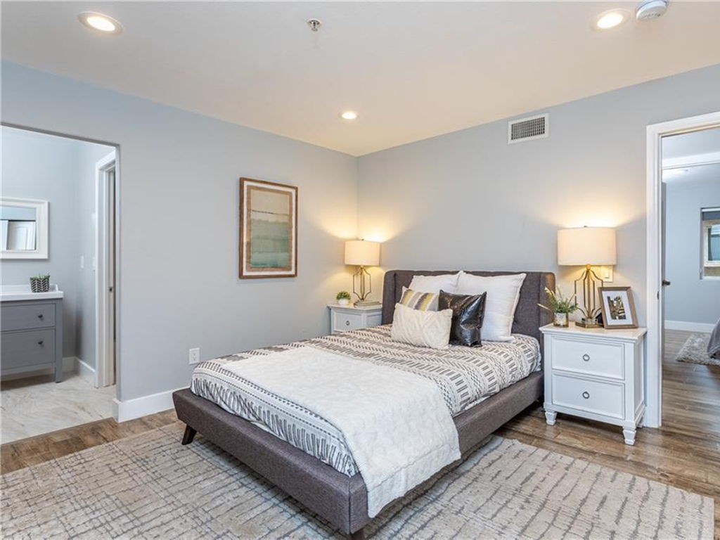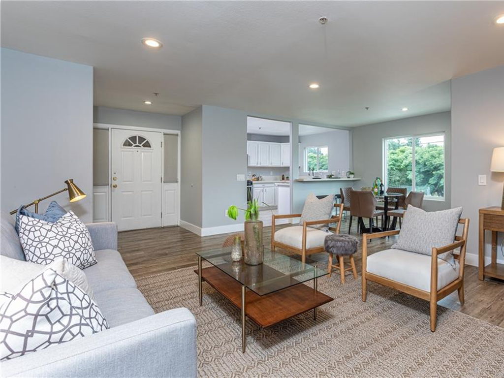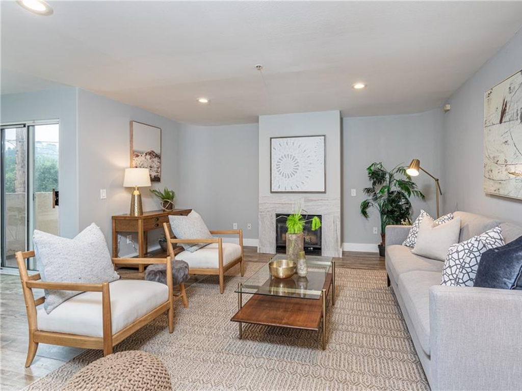 Located in the highly desirable Highland Park neighborhood! This standout condo, a spacious unit with a great floorplan, has so much to offer. The large living room, with stunning wide plank wood flooring and a chic fireplace is adjacent to the cozy dining area with a slider door leading to a balcony. T