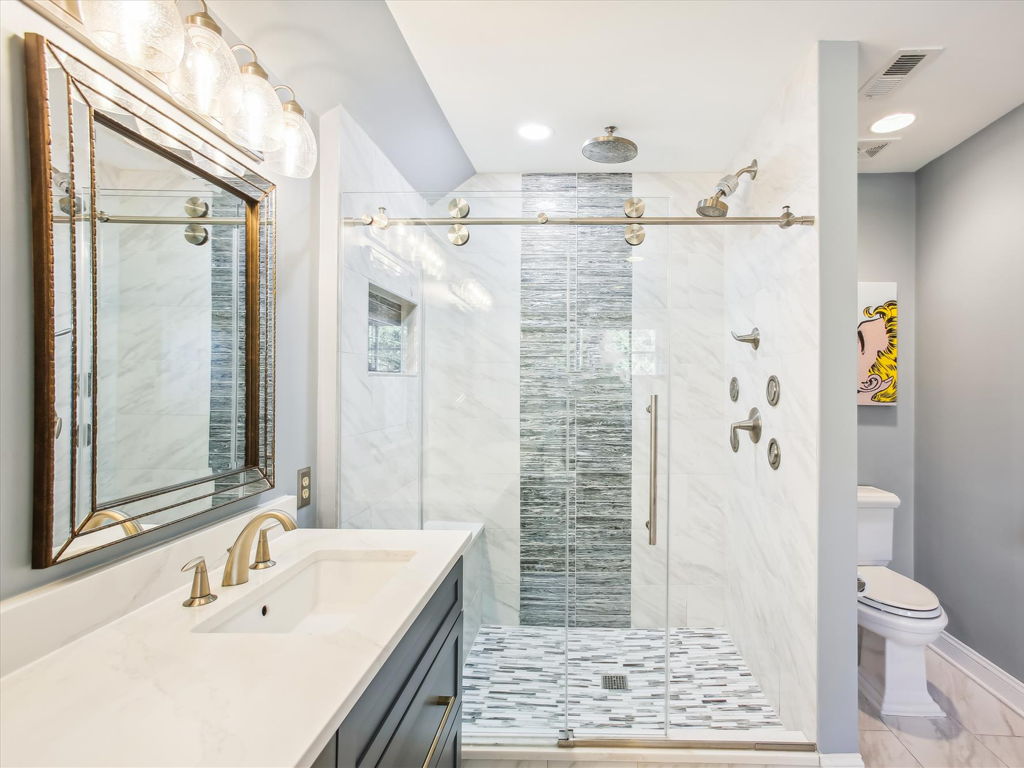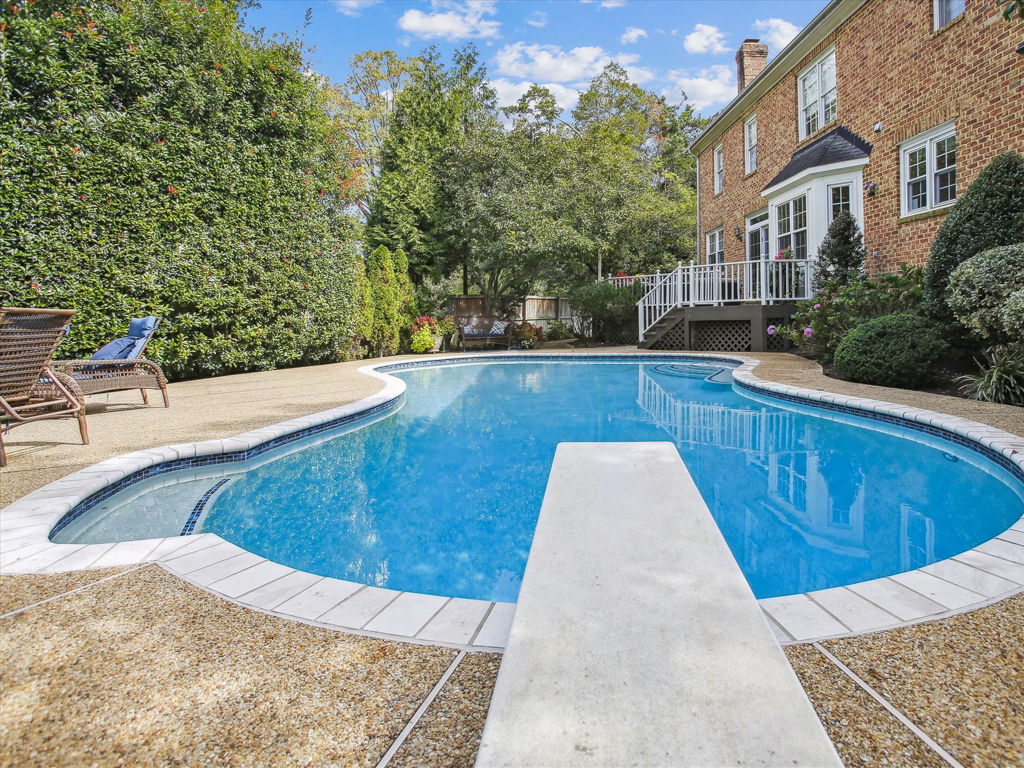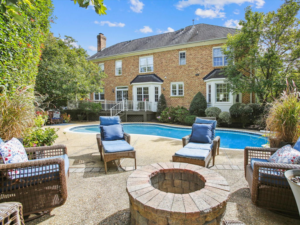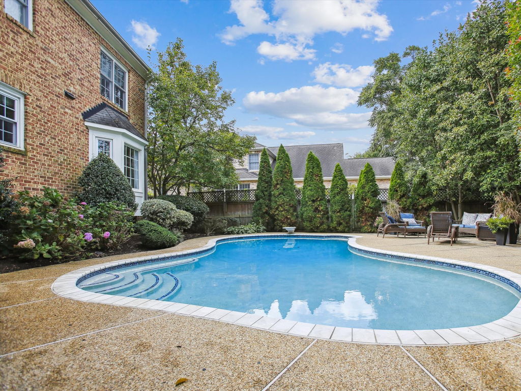 Welcome to 9056 Tower House Place, a delightful custom home nestled in a fantastic location just off the GW Parkway, south of Old Town Alexandria. This Bart Boucher masterpiece boasts five bedrooms, four and one-half baths, and spans three spacious levels adorned with gorgeous hardwood floors. The heart of the home is an inviting kitchen with top-notch Thermador appliances, quartz countertops and an island with a marble top, opening up to a family room with a cozy wood-burning fireplace. Venture outside to your own private oasis—a backyard retreat featuring a pool, expansive deck, diving board and a charming firepit. The lush landscaping completes the picture of this perfect home built in 1998, offering over 4,900 square feet of comfort and style. Come experience the warmth and charm of 9056 Tower House Place—your dream home awaits!