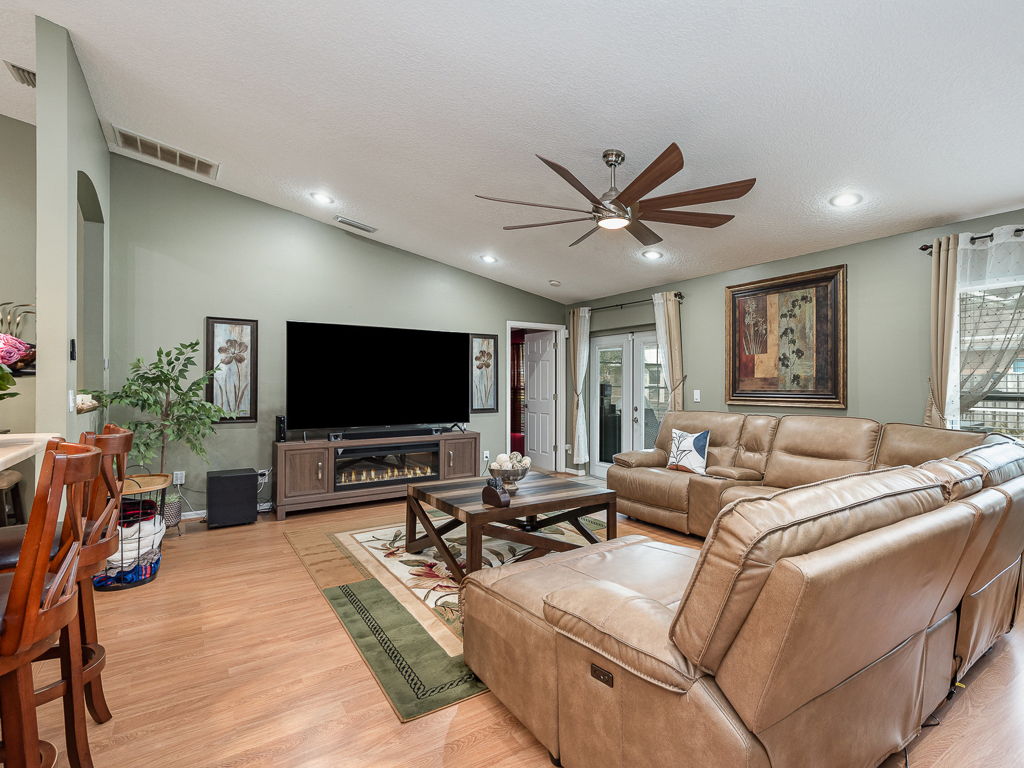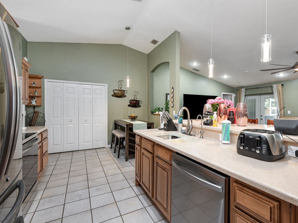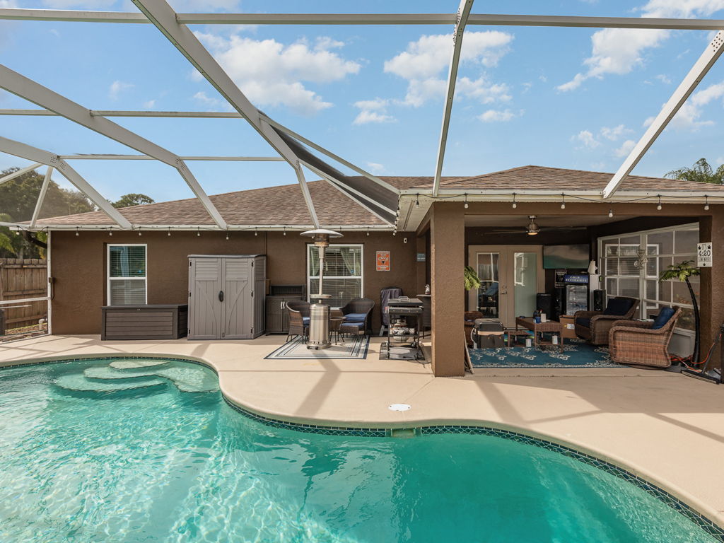 Gorgeous SCREENED-IN POOL HOME totally updated offering a perfect blend of comfort and leisure in highly-sought after community of Cypress Woods in Port St John only 3 miles to the NASA Causeway. This delightful residence features three spacious bedrooms in a split floorpan and two well-appointed bathrooms and don’t forget the amazing Coffee Bar at the center of the open concept kitchen with solid surface countertops. Then step through French doors into your furnished backyard oasis, where a sparkling pool, lounge area and space for a great cookout setup invites you to relax and unwind. Open the back doors to the screened pool area and put down the roll-up garage door screen and viola, you are the only home on the block to enjoy a refreshing bug-free cross breeze saving tons on AC bills!