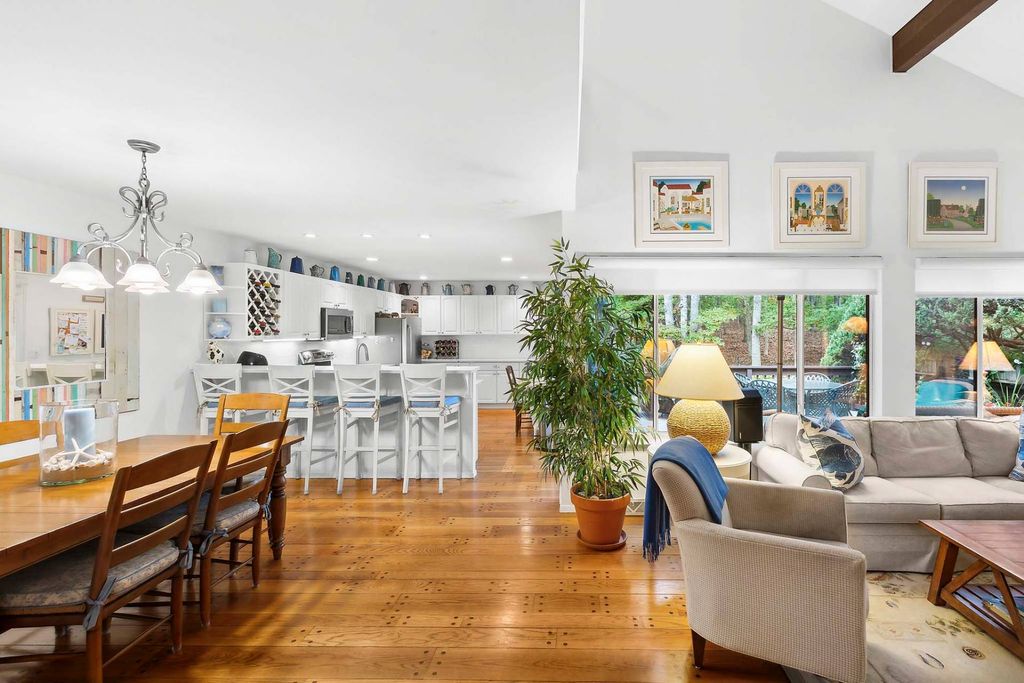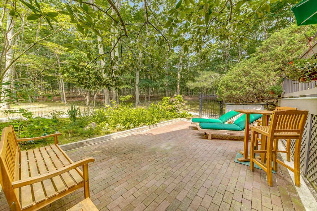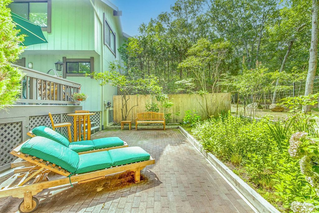 EASY LIVING IN LARGE FOUR BED, THREE BATH CONDO W/ POOL & TENNIS This light-filled four bedroom, three-bath condo in desirable Treescape was renovated in 20??. This impeccably maintained end unit offers the perfect space to enjoy your time in the Hamptons without the hassles of property maintenance. The first floor offers open-plan living areas with a cathedral ceiling and wood-burning fireplace in the living room, open to a spacious modern gourmet kitchen and dining area that leads to a large private back deck, brick patio & private garden. There is also a guest bedroom and a full bath on this level. The ensuite primary bedroom and an additional large bedroom are located on the second floor. The lower level boasts a fourth bedroom, an office/gym, another full bathroom, a sitting room, separate storage area and laundry. This residence has central A/C. Community amenities include a large heated swimming pool with bath changing rooms, showers, and three tennis courts, all nestled within 60 private wooded acres one minute into East Hampton’s Northwest Woods, one mile to East Hampton Village, five minutes to the Bay, and ten minutes to the Ocean.