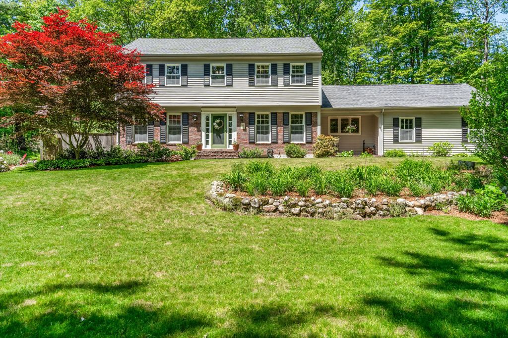 YOUR FOREVER HOME IN AN IDEAL LOCATION… COMMUNITY AND CONVENIENCE JUST OUTSIDE YOUR DOOR! Located near the town center, minutes to the library, cafes and shops, this classic center entrance colonial, sits back privately in an iconic, established neighborhood. Dappled natural light welcomes you into a spacious living room that spans the home’s width offering leafy views from every window. Take your morning paper onto the deck and enjoy a panoramic display of lush landscaping and curved stone walkways. Pick a bouquet from colorful perennial beds or settle around the circular fire pit patio in the evening for s’mores and stories under the stars. A stone path leads to a tranquil backyard terrace where birdsong provides a natural soundtrack. Inside, cozy up in the family room by the fireplace or in the refreshed custom kitchen for conversation and casual meals. Delight in creamy cabinetry, chic tile, granite surfaces and a wet bar for entertaining. The adjacent sunroom is an ideal environment for quiet introspection or those work-from-home days that are enhanced by artfully crafted file storage in a custom window seat. Downstairs, a finished retreat offers flexibility for fitness or fun. For the hobbyist…a workshop awaits. For the fashionista…a cedar closet for your treasures. At day’s end, head upstairs to a serene primary with a stylish ensuite. Three additional generous bedrooms share the ease of a five-piece bathroom. A CHERISHED HOME…READY FOR ITS NEXT CHAPTER!