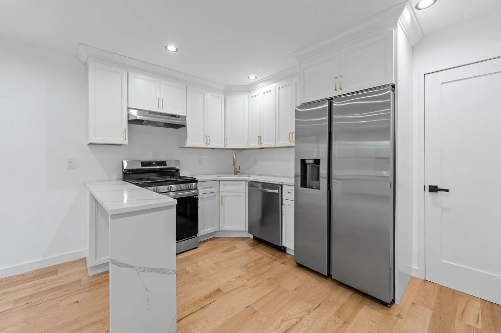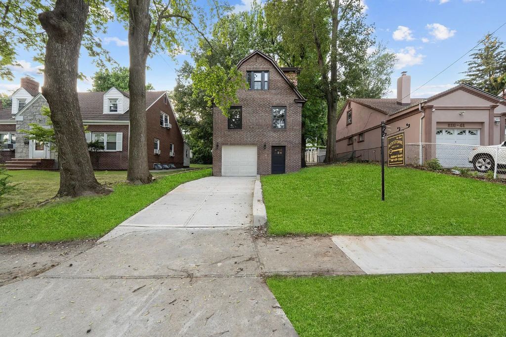 Space, style & modern luxury come together at 218-37 Spencer Avenue! A meticulously renovated 3 story single townhouse tucked away on a quiet, tree lined street of the Queens Village/ Hollis Hills border line. Sitting on a 40×100 lot featuring a wide private driveway, indoor garage and tons of space to enjoy outdoor gatherings. This charming single family will captivate you from the moment you arrive with its warm & welcoming energy. The indoor garage has access to the high ceiling walk in full finished basement, which has a designated laundry room, mechanical room and storage space and a full bath. The parlor floor of the owners duplex features an expansive sun drenched, modern open concept living/dining area which provides great space for entertaining. Beautiful chefs granite kitchen equipped with floor to ceiling custom cabinetry, island for bar stool seating and boast a full fleet of stainless steel appliances. 1/2 bath on first floor for your guest. Tucked away in the rear of the first floor the elegant primary suite awaits you, adorned with a private en suite with spa-like finishes and a walk in closet. Up a flight of stairs onto the second floor 3 additional spacious bedrooms awaits you, each equipped with ample closet space. Down the hall a fully tiled bathroom is adorned with state of the art wall & floor tiles and shared between the additional bedrooms. Renovations include brand new select wide oak wood flooring, recessed lighting, central A/C, brand new electrical, heating and plumbing systems throughout. This masterfully re-imagined single family is conveniently located with close proximity to major transportation which makes commuting a breeze. Short blocks to Braddock Avenue, Hillside Avenue, Grand Central Parkway, Springfield Blvd. Short blocks to schools, shopping centers, restaurants, cafes, parks and many other vibrant neighborhood amenities.
