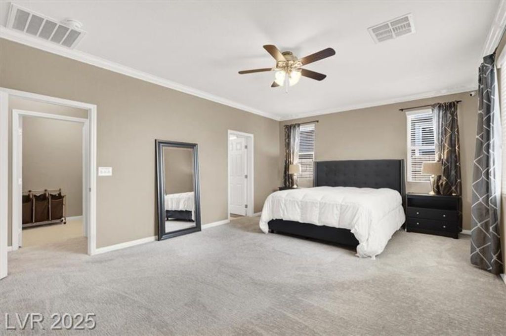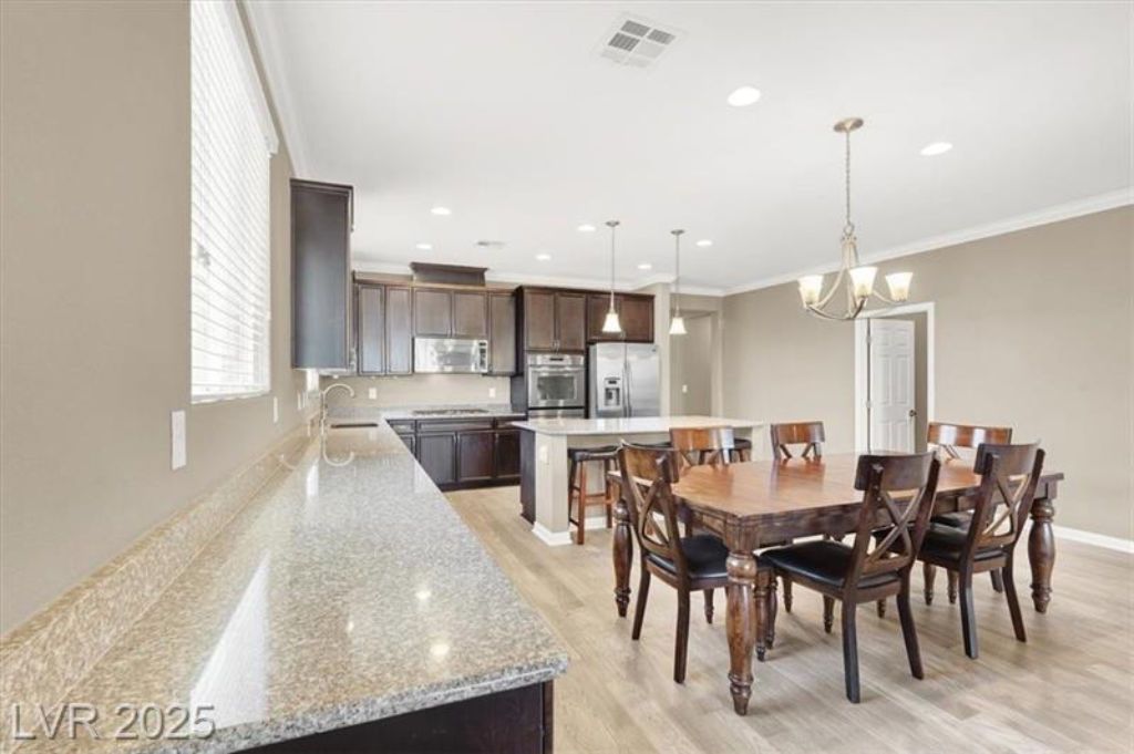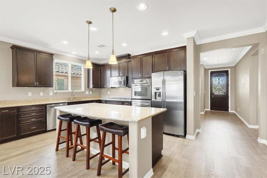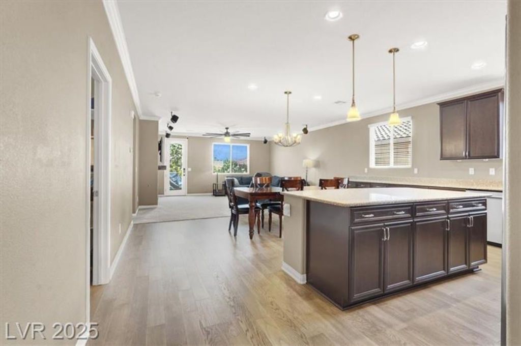 Single-Story Mountains Edge Paradise Awaits! Get ready to fall in love with this stunning single-story home in Mountains Edge. This 3-bedroom gem boasts a luxurious oversized primary suite tucked away just for you, offering the ultimate in privacy. The great room is the ideal spot for a get-together with friends or just a cozy night in by the fireplace. Need a little more room? The versatile den is ready to be your home office, a comfy retreat, or even a fourth bedroom! With gorgeous engineered hardwood floors throughout and thoughtful upgrades like crown molding, every detail feels just right. Beyond the front door, you’ll discover a community that has it all — parks, trails, shopping, dining, and even a brand-new Costco closeby! This home is more than just a place to live; it’s a lifestyle. Don’t miss your chance to see it! Stop by our open house & say hello! Listed by Patrick J. Dodd, Sphere Real Estate, Lic # S.0177337 OPEN HOUSE Hosted by LINDA EVANS Lic # S0177930 702.529.4812 LindaKnowsVegasHomes@gmail.com On-site Lender ORRY POUNDERS Barrett Financial Group – NMLS #2013035 415.580.8841 ORRY@BARRETTFINANCIAL.COM