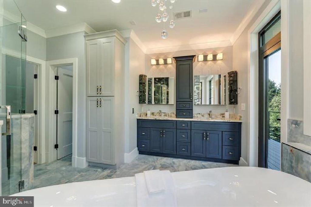 NBC News filmed a news story on the special features! This newly constructed 8,000-square-foot custom home offers solid craftsmanship and carefully selected imported materials throughout. Situated by Great Falls Woods with an access drive to & from Preserve Court, the property delivers a well-designed floor plan with generous space and practical features. The seller built this home as a personal residence. It features extras that are not common in other new homes such as: foam insulation in walls and attic, hardi-siding and cladding on the exterior, custom imported European doors and window (energy and sound efficient), solid core interior doors, full stone slab tile, heated floors, surround sound wiring throughout, separate media room, and a safe room with concrete finished walls and ceiling and steel door as featured in NBC news! The main and upper levels feature hickory hardwood flooring and an architectural floating double staircase. The kitchen includes Cambria countertops, a large center island, Bosch stainless steel appliances, induction cooktop, and a walk-in pantry with custom shelving. Nearby, the sunroom dining area overlooks the backyard, and the family room includes a 5-foot linear pellet fireplace with built-in shelving. The main level also features a formal dining room, a family library with custom built-ins, a separate sitting room/office , a butler’s pantry with stone countertops and high end cabinets, and a spacious mudroom that could be converted into a second kitchen. A powder room with full-height imported full slab stone tile adds a unique touch. Upstairs, five bedrooms each have access to luxury bathrooms with custom tile, designer vanities and Hansgrohe fixtures. The primary suite includes two walk-in closets with California Closets systems, a built-in vanity area, and walk in the clouds custom tiled bathroom with a freestanding jetted tub, glass-enclosed shower with lighting and extra jets, and a private rear balcony overlooking the backyard. The walkout lower level includes a large recreation room, wet bar, a second laundry area, a pre-wired theater room, a fifth full bathroom, and a finished secure safe room. Smart home wiring is already in place. Outdoor features include a front patio, a maintenance-free rear deck, and a lower-level patio. The 0.75 acre lot has room for a private future pool. The attached 3-car garage includes 2- EV charging. This is an amazing opportunity for buyers seeking a spacious, newly built home in Great Falls with quality materials and a versatile layout. The home is within walking distance from the rear to CVS & Seneca Shopping Plaza which features several great dining options. It is close to Herndon Metro, Great Falls Village , Reston Town Center, Great Falls Park & Dulles Airport!