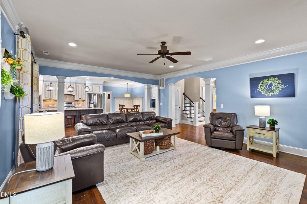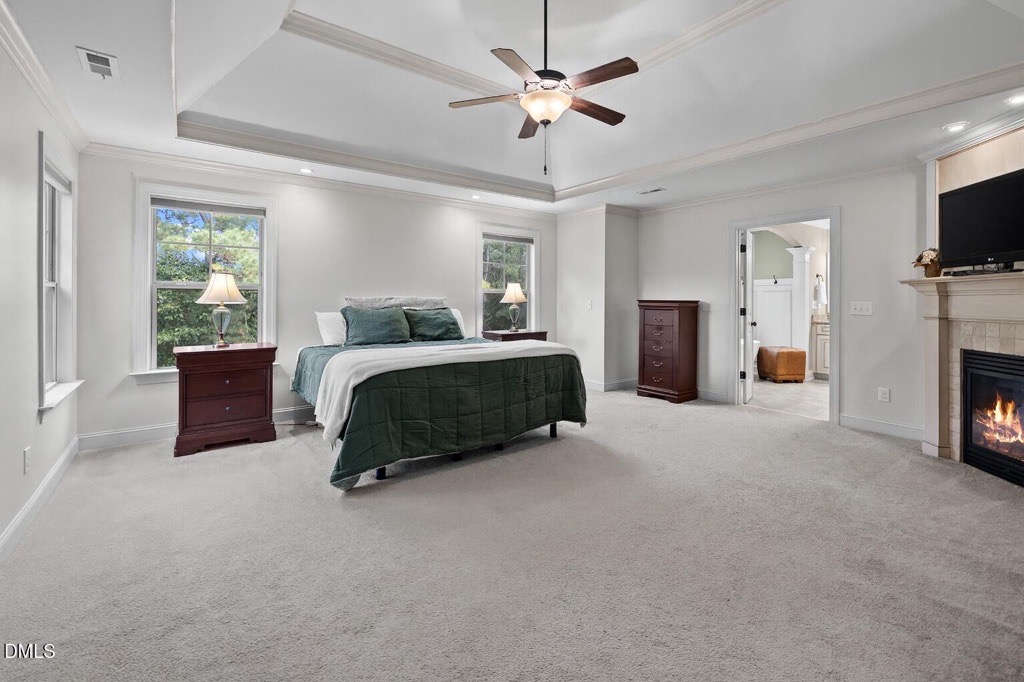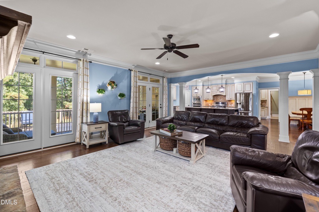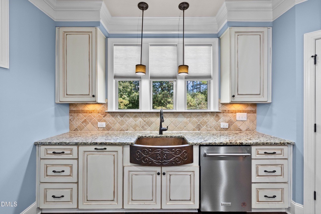 Welcome to this stunning former Parade of Homes showcase, where luxury design meets everyday comfort. Just minutes from Falls Lake, Upper Bartons Creek Boat Ramp, and Shinleaf Recreation Area, this home offers an ideal balance of elegance and convenience. Step inside to find a welcoming first-floor bedroom that doubles as a private guest suite or home office. The gourmet kitchen is a chef’s dream with an oversized island, granite countertops, copper farmhouse sink, designer tile backsplash, built-in appliances, and a walk-in pantry. The open floor plan flows effortlessly into the breakfast nook, coffee bar, and spacious family room complete with a stone fireplace and custom built-ins. A screened porch, grilling deck, and professionally landscaped backyard extend your living space outdoors, perfect for entertaining or relaxing.The formal dining and living rooms feature coffered ceilings and gleaming hardwood floors, while the owner’s retreat is a true sanctuary with its tray ceiling, gas fireplace, spa-inspired bath with a two-person rain shower, soaking tub, dual vanity, and oversized walk-in closet. Upstairs, you’ll find three additional bedrooms, two full baths, and a versatile bonus room. The unfinished third-floor walk-up, already plumbed and wired, offers endless opportunities for expansion, storage, or a future home office. Additional highlights include a 3-car garage with extended parking pad, encapsulated crawlspace, security system, and a level, landscaped lot.This sought-after community features resort-style amenities including a clubhouse, pool, playground, volleyball court, putt-putt, and a neighborhood pond. With easy access to Rollingview Marina, Kerr Lake, and Lake Gaston, this home is perfectly positioned for both relaxation and recreation. Combining thoughtful design, abundant space, and an unbeatable lifestyle, this property is ready to welcome its next owner. Schedule your tour today!